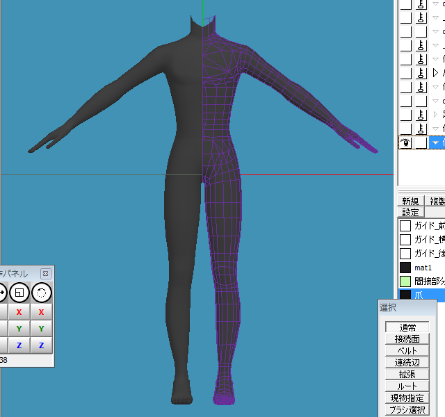 今回いわゆるAスタンド?MMDモデルの初期ポーズですね、あの腕の角度で最初から作ってたんですが、修正したりって事考えるとTスタンドの方がやりやすそうだなあと思いました…手の大きさ変えようとか思っても角度ついてたら思うようにいかないんですね…ふむふむ勉強になりました!