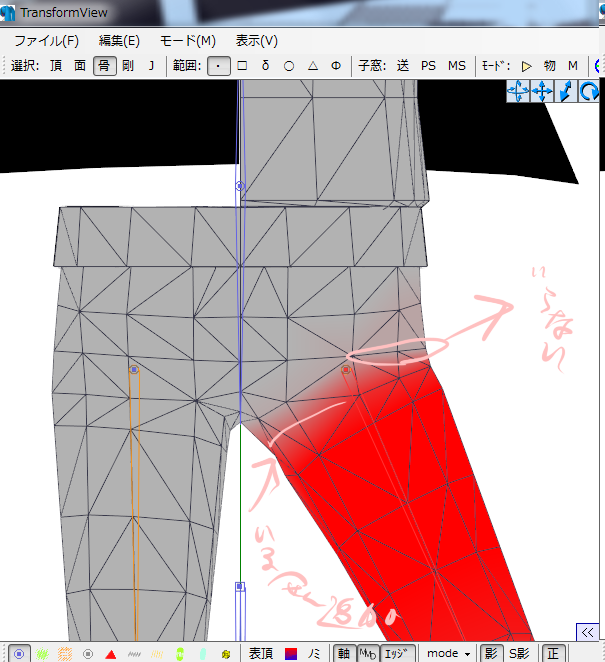 効率悪いかもだけど、メタセコでおっけーと思ってもMMD持ってくとなんか違う…とかおかしいとこが…とかあるんでMMDやPMXEで確認しないと分んないっていう…
