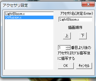 こちらの動画見てた時に気づきまして。アクセサリ設定で、ライトブルームを一番上にするまではやってたんですが、その後の。0番目より後のアクセは~のとこですね。